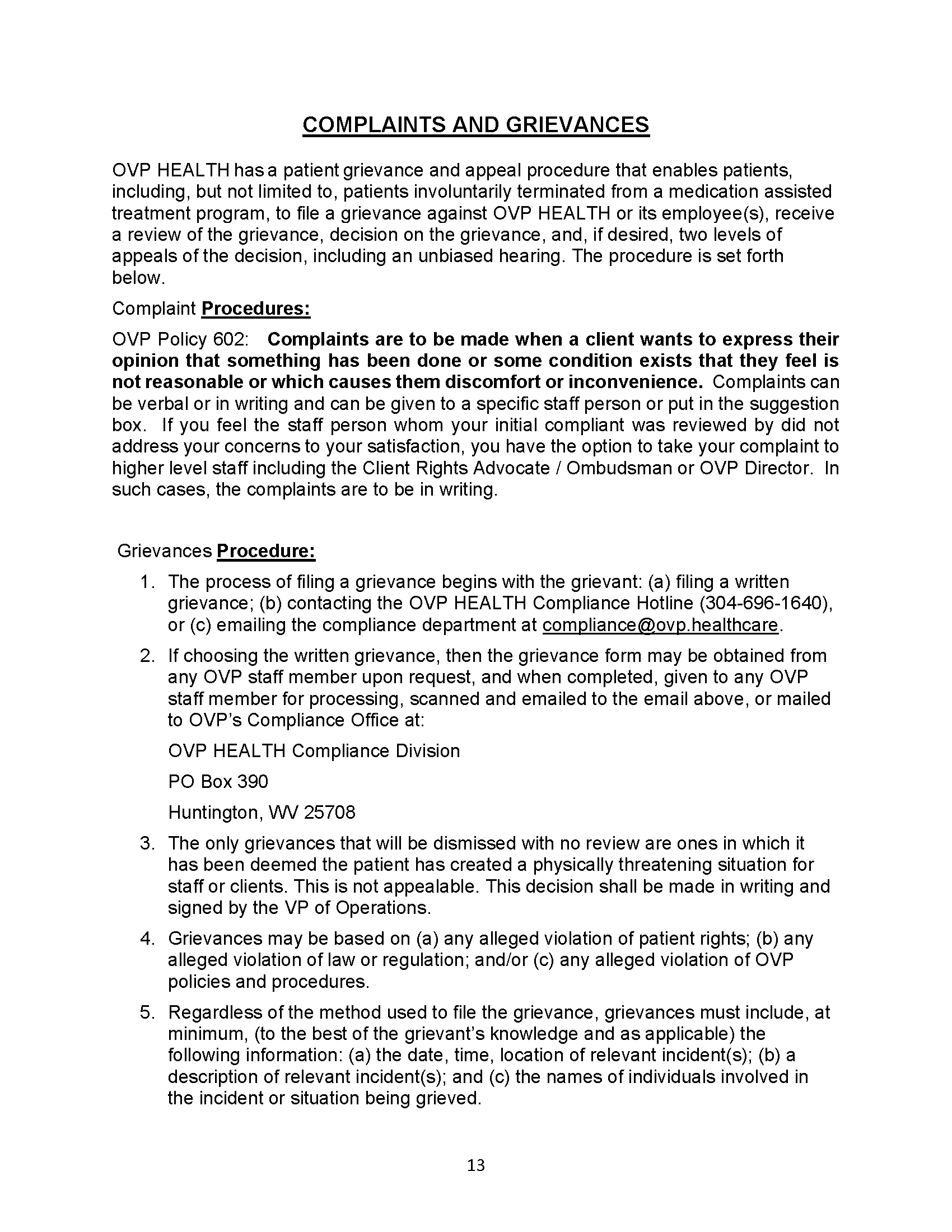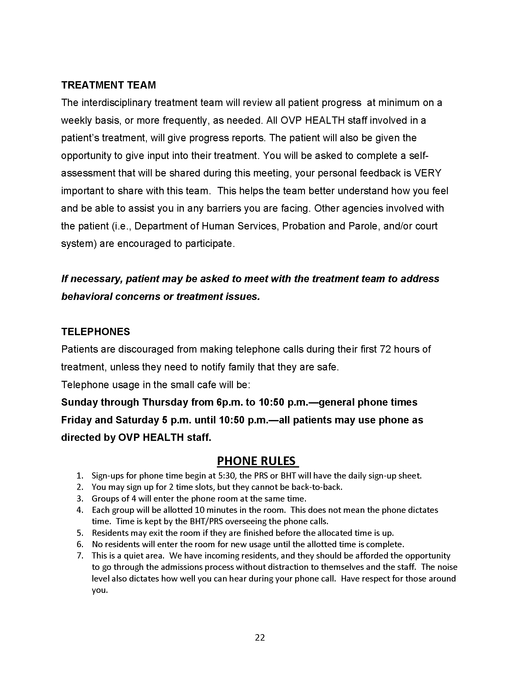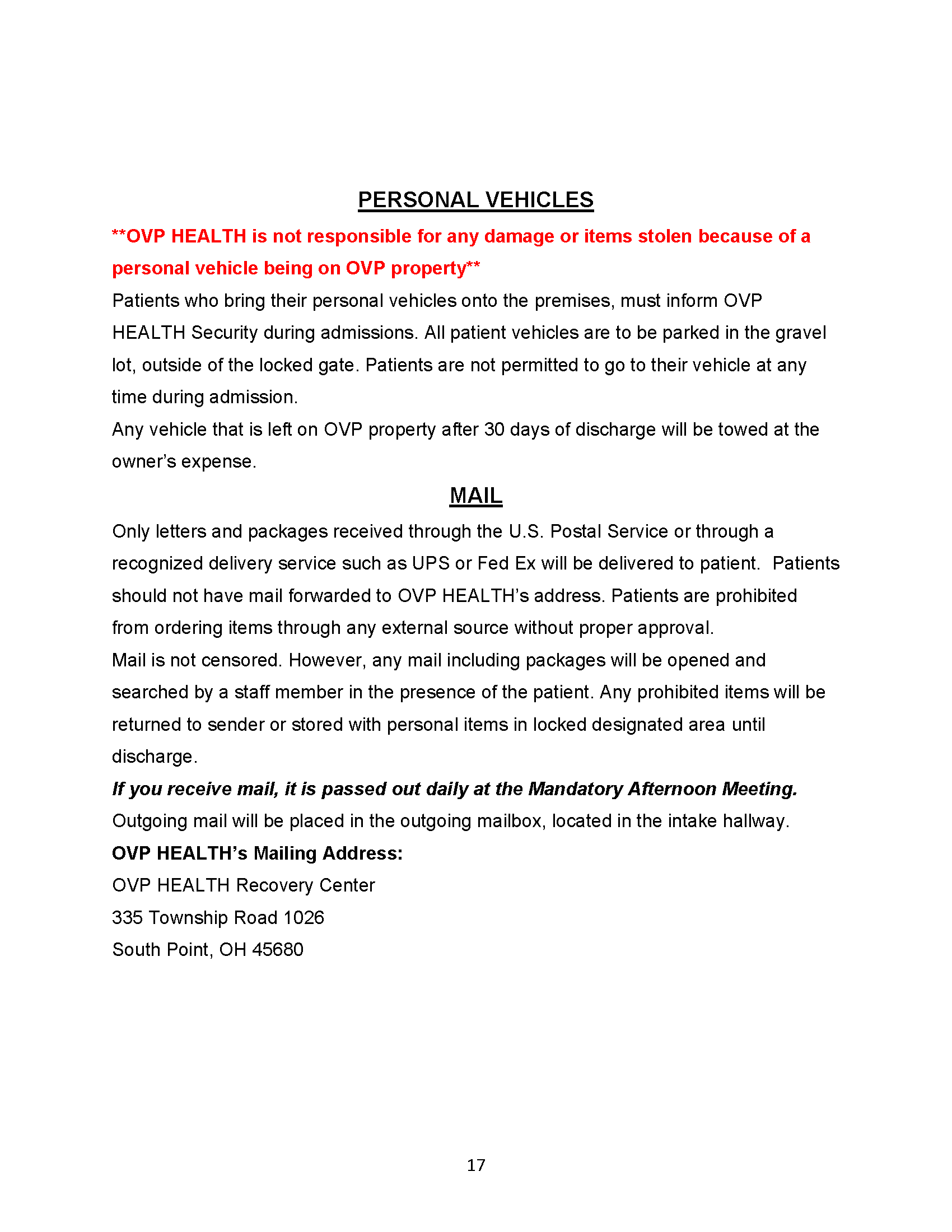 Read our Patient Handbook for admissions and patient information for OVP Recovery Center facilities in South Point, OH and Massillon, OH (coming soon!)